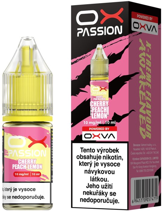 Objevte prémiový e-liquid OXVA OX PASSION Salts Cherry Peach Lemon s intenzivní ovocnou chutí třešně, broskve a citrónu. Ideální volba pro milovníky vyváženého vapingu s nikotinovou solí.