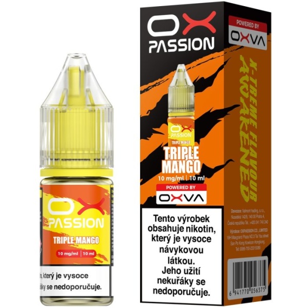 Objevte tropickou explozi s Liquid OXVA OX PASSION Salts Triple Mango 10ml – 20mg, prémiovým e-liquidem s nikotinovou solí pro hladké vapování bez dráždivého pocitu v krku.