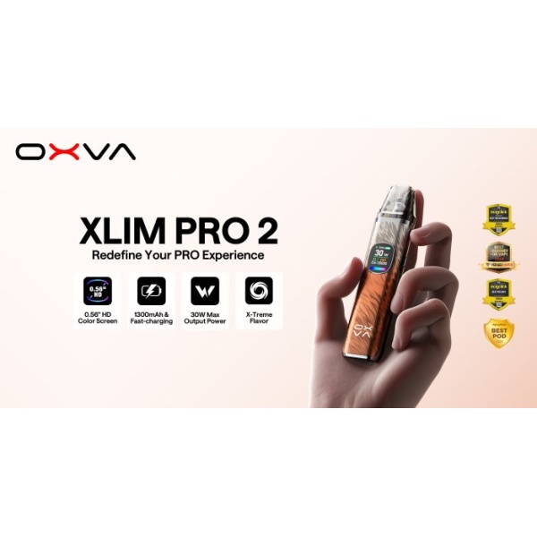 Objevte OXVA Xlim Pro 2 elektronickou cigaretu v elegantní Amber Orange barvě, která nabízí kapacitu baterie 1300mAh, Ultra-HD displej a výkon až 30W. Ideální volba pro vapery hledající styl a výkon.