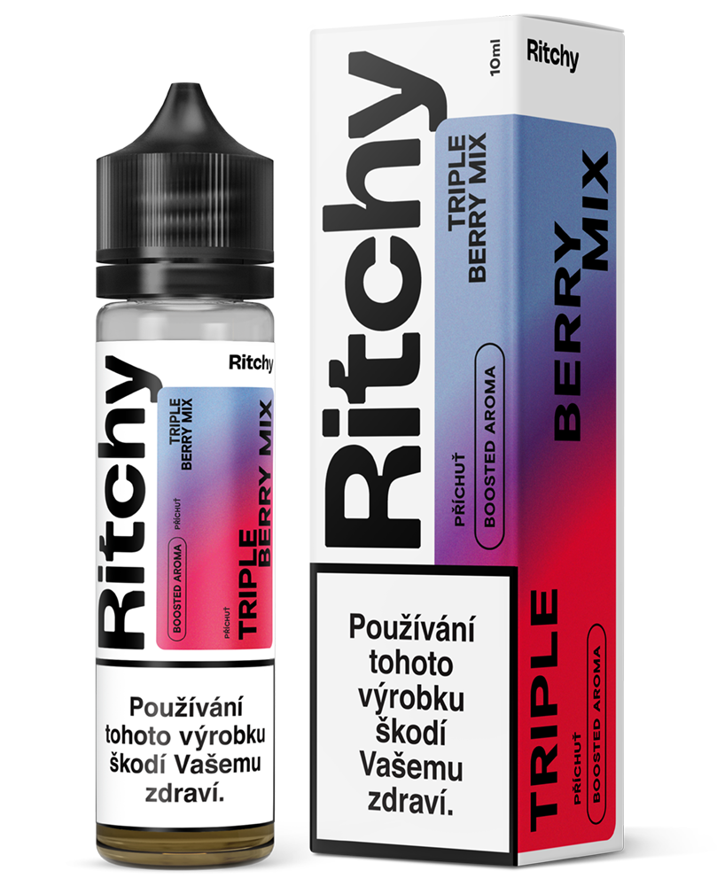 Objevte lahodnou směs sladkých jahod, malin a borůvek s příchutí Ritchy S&V – Triple Berry Mix 10ml, ideální pro milovníky ovocných e-liquidů.